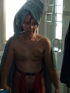 First shower after double mastectomy, with 100ml tissue expanders. July 2015